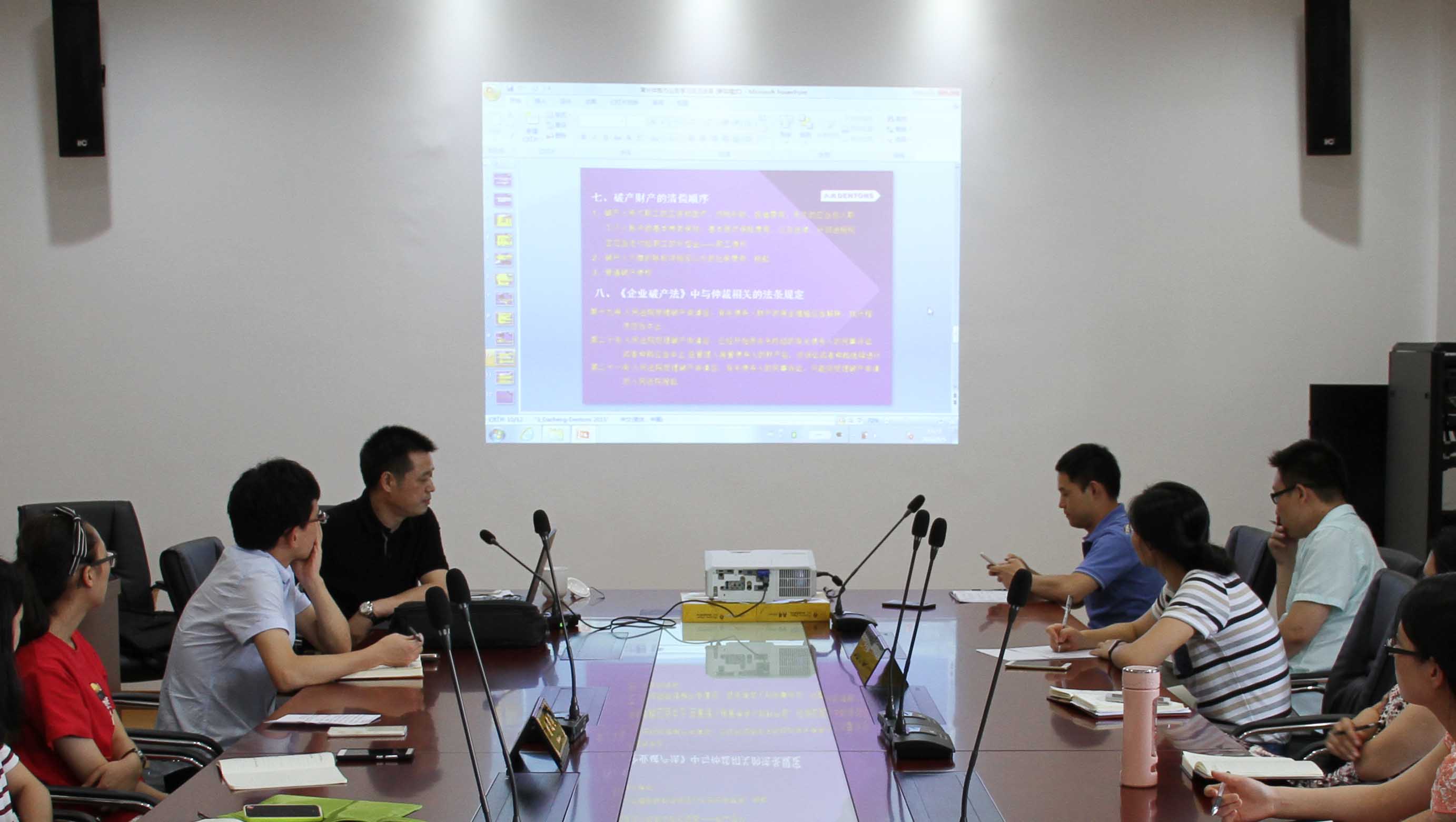 - 为进一步夯实仲裁办内部学习的效果,提高程序管理员的工作能力,8月5日,常州仲裁委邀请常州仲裁委资深仲裁员、北京大成(常州)律师事务所主任戴旭初给全体程序管理员进行了一次破产法理论和实践知识授课。