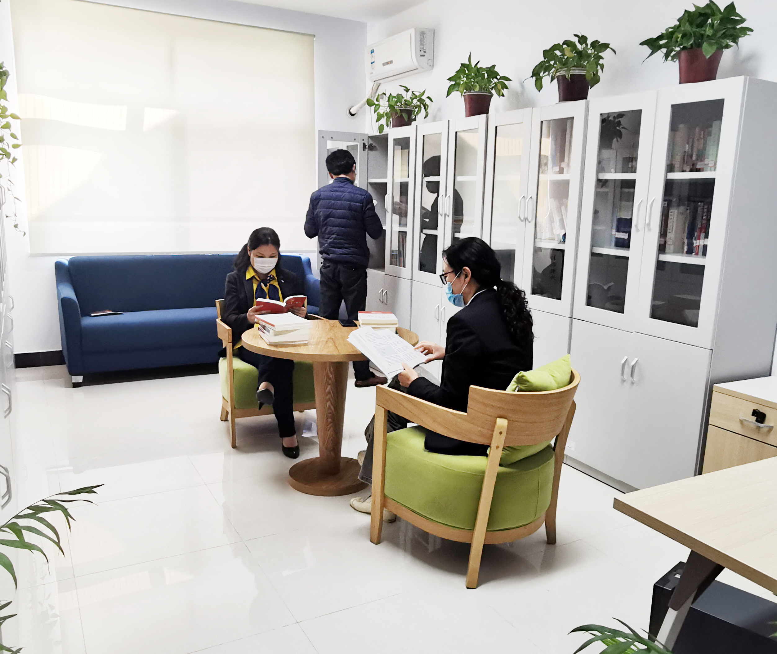 仲裁办支部把党建书屋作为支部党员的“红色教育阵地”,倡导“读原著、悟原理、强党性”,利用“三会一课”、主题党日等时机组织开展读书活动,树立良好读书风尚,强化党员责任意识。书屋环境优雅安静,布置温馨舒适,在每个工作日中午开放,支部安排党员轮流值守,做好查找书籍、借阅登记及环境卫生等服务工作。为确保党建工作与业务工作有机融合,仲裁办支部还购置了法律专业书籍以及“北大法宝”数据库,以满足支部党员及仲裁办工作人员的学习需求。