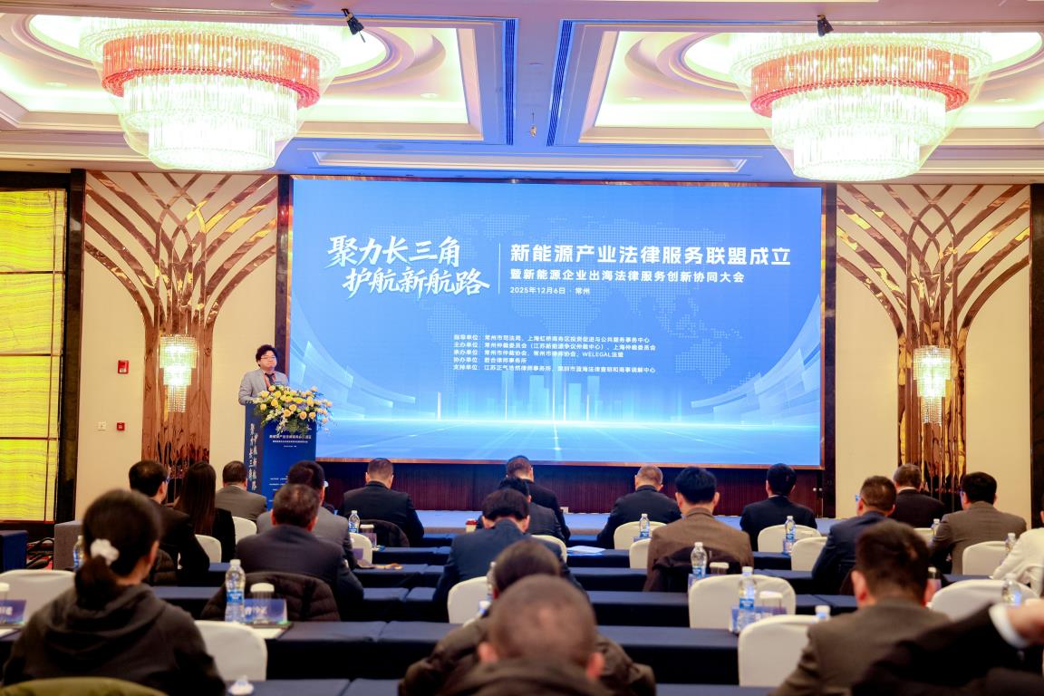 2025年12月6日,“聚力长三角 护航新航路”新能源产业法律服务联盟成立暨新能源企业出海法律服务创新协同大会在常州举办。市委常委、政法委书记,市公安局局长于贵平,上海虹桥国际中央商务区管理委员会党组成员、副主任杨旭波参加活动并致辞,省市相关部门、行业协会,仲裁机构及全国各地新能源企业代表参加。